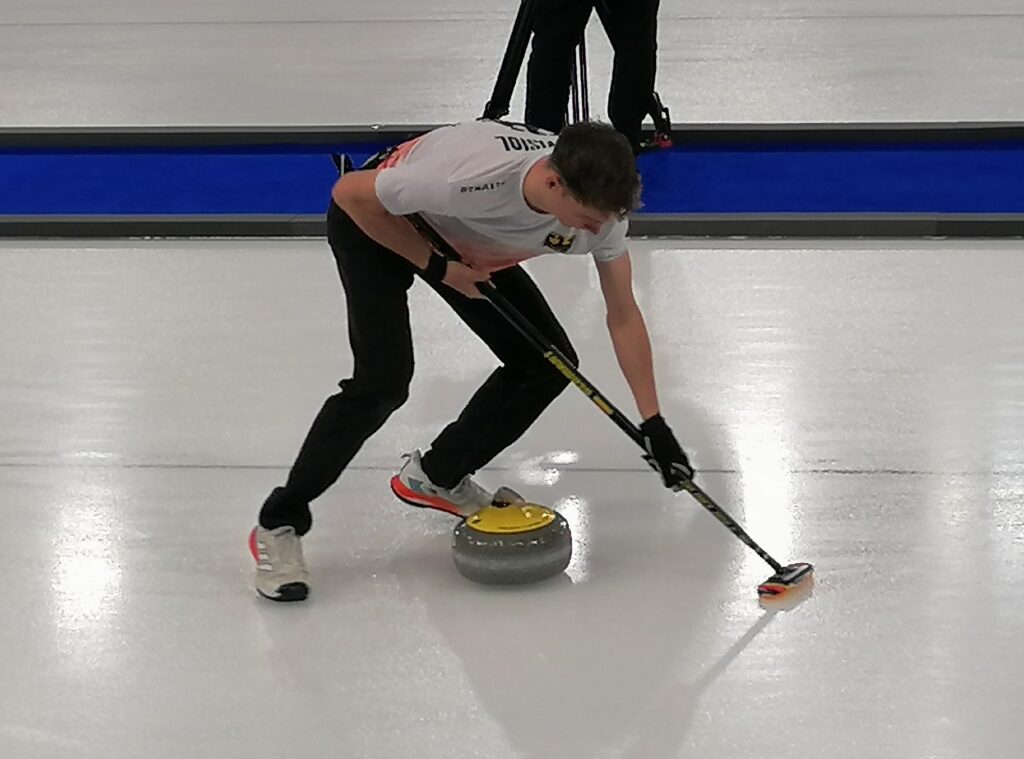 Vom 14.-16. November nahm der Curling Club Konstanz am Ankerradcup in Schwenningen teil. Eine Premiere für drei unserer Curler aus dem Hochschulsport, die in Schwenningen erste Turniererfahrungen sammeln konnten. Bereits am ersten Abend waren wir erfolgreich: 8:6 gegen die MH Seniors. Der zweite Turniertag startete früh – vielleicht etwas zu früh für uns, denn die Schwenningen Allstars I waren uns klar überlegen und siegten mit 7:4. Nach der Mittagspause gingen wir frisch gestärkt gegen die Betriebsmannschaft von Identa aufs Eis. Ein durchgängig spannendes Spiel, das wir dank 4 Steinen im ersten End mit einem Ergebnis von 8:6 für uns entscheiden konnten. Doch am Sonntag hatten wir erneut mit dem frühen Start um 8:30 zu kämpfen – 11:0 für den CC Mannheim. Trotz dieser Niederlage hatten wir uns für ein weiteres Spiel qualifiziert und traten mittags gegen den CC Köln an. Spannend blieb es bis zum letzten Stein: Zu Beginn des 8. Ends führte Mannheim mit 7:5. Gegen Ende des Ends lagen zwei unserer Steine mittig, doch für den endgültigen Sieg brauchte es noch mehr, und tatsächlich: Der Hammer im letzten End bescherte uns den Erfolg. Wir konnten das Turnier auf Platz 4 von 8 Teams beenden. Ein erfolgreiches Ergebnis für unsere Anfänger und ein schöner Abschluss eines intensiven Wochenendes in Schwenningen. (Skip Oliver Trevisiol mit Maik Neugebauer, Muriel Janke, Jakob Xiao und Maximilian Bückle)