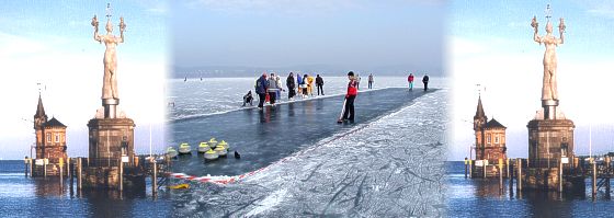 Curling auf dem zugefrorenen Bodensse vor der Insel Reichenau